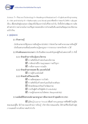 2.3 ผลลัพธ์ที่พึงประสงค์ตามมาตรฐานการศึกษาของชาติ พุทธศักราช 2561