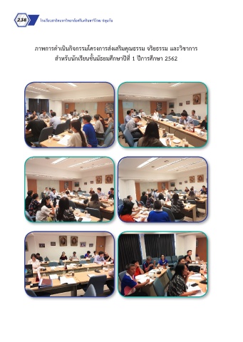 238 โรงเรียนสาธิตมหาวิทยาลัยศรีนครินทรวิโรฒ ปทุมวัน ภาพการด�าเนินกิจกรรมโครงการส่งเสริมคุณธรรม จริยธรรม และวิชาการ ส�าหรับนักเรียนชั้นมัธยมศึกษาปีที่ 1 ปีการศึกษา 2562