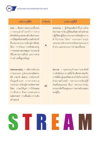 Arts = ศิลปะการออกแบบชิ้นงาน Activity = ผู้เรียนลงมือท�าชิ้นงานด้วย