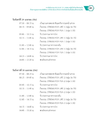 08.15 – 09.45 น. กิจกรรม STREAM FOR LIFE 2 (กลุ่ม 36-70)