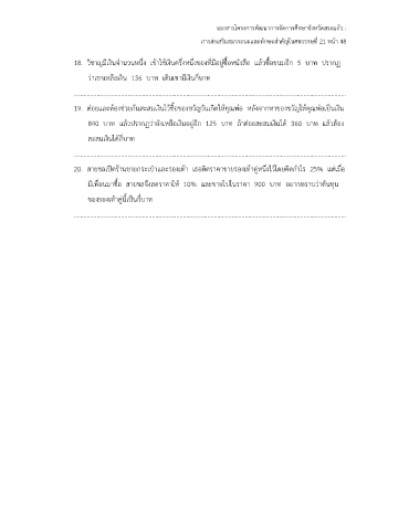 20. สายชลเปิดร้านขายกระเป๋าและรองเท้า เธอติดราคาขายรองเท้าคู่หนึ่งไว้โดยคิดกําไร 25% แต่เมื่อ