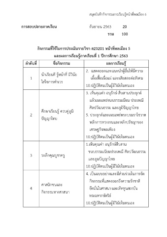 กิจกรรมที่ใช้ในการประเมินรายวิชา ส23201 หน้าที่พลเมือง 5