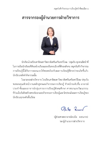 สารจากรองผู้อ านวยการฝ่ายวิชาการ
