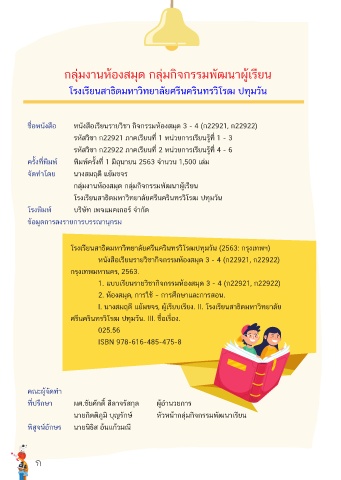 1. แบบเรียนรายวิชากิจกรรมหองสมุด 3 - 4 (ก22921, ก22922)