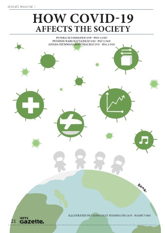 STUDENT'S MAGAZINE \ HOW COVID-19 AFFECTS THE SOCIETY PUNIKA SUVIMOLPAN (#19 - PAN 1/343) PITSINEE NARUNATVANICH (#22 - PAT 1/343) AIYADA IEUMWANANONTHACHAI (#35 - IDA 1/343) ILLUSTRATED BY CHAWANRAT PERMBHUSRI (@18 - BAMBI 5/340) 21