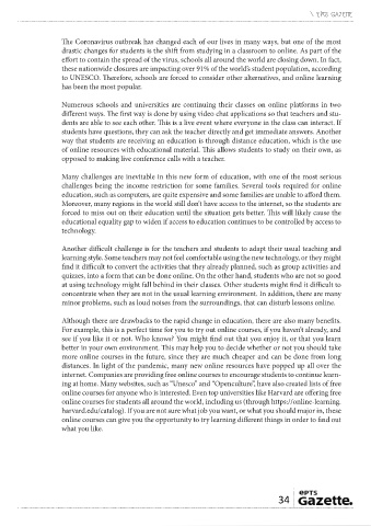 drastic changes for students is the shift from studying in a classroom to online. As part of the