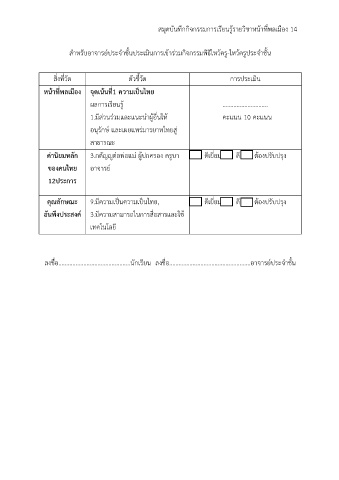 สมุดบันทึกกิจกรรมการเรียนรู้รายวิชาหน้าที่พลเมือง 14