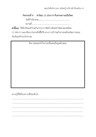 สมุดบันทึกกิจกรรมการเรียนรู้รายวิชาหน้าที่พลเมือง 15