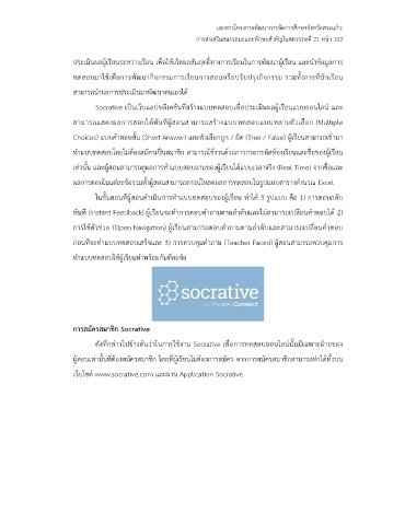 ก่อนที่จะทําแบบทดสอบเสร็จและ 3) การควบคุมคําถาม (Teacher Paced) ผู้สอนสามารถควบคุมการ