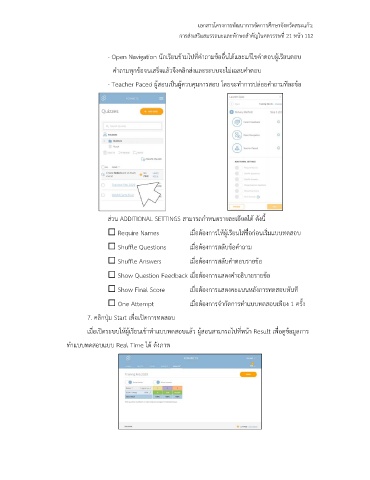 - Open Navigation นักเรียนข้ามไปที่คําถามข้ออื่นได้และแก้ไขคําตอบผู้เรียนตอบ