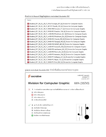 เอกสารโครงการพัฒนาการจัดการศึกษาจังหวัดสระแก้ว: การส่งเสริมสมรรถนะและทักษะสําคัญในศตวรรษที่ 21 หน้า 114 ตัวอย่างการ Report ข้อมูลในรูปแบบ Individual Students PDF รูปแบบ Individual Students PDF ทําหน้าที่เหมือนกระดาษคําตอบรายบุคคล