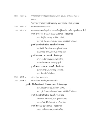 11:00 – 12:00 น. บรรยายเรื่อง “กิจกรรมการเรียนรู้บูรณาการ Double STREAM: Play to