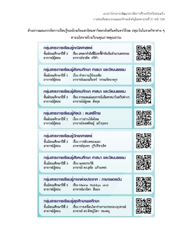 เอกสารโครงการพัฒนาการจัดการศึกษาจังหวัดสระแก้ว: การส่งเสริมสมรรถนะและทักษะสําคัญในศตวรรษที่ 21 หน้า 130 ตัวอย่างแผนการจัดการเรียนรู้ของโรงเรียนสาธิตมหาวิทยาลัยศรีนครินทรวิโรฒ ปทุมวันในรายวิชาต่าง ๆ ตามนโยบายโรงเรียนคุณภาพคุณธรรม