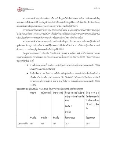 ความสามารถต่ํากว่าระดับ 2 ทั้งสามด้าน ซึ่งมีมากกว่าค่าเฉลี่ยของประเทศสมาชิก OECD