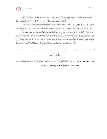 PISA 2018 : บทสรุปสําหรับผู้บริหาร. เอกสารสําเนา.