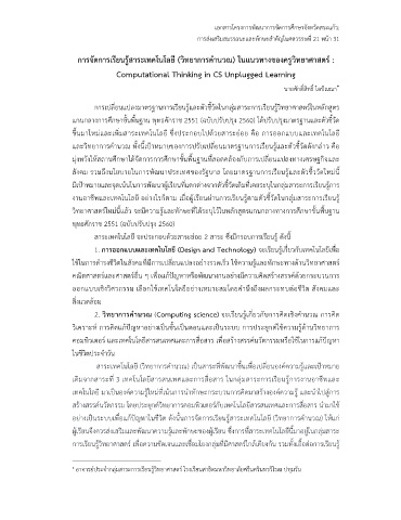 การจัดการเรียนรู้สาระเทคโนโลยี (วิทยาการคํานวณ) ในแนวทางของครูวิทยาศาสตร์ :