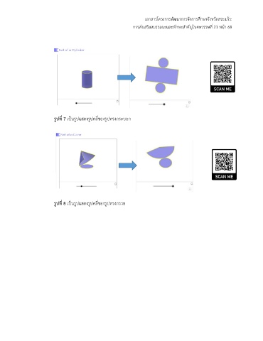 เอกสารโครงการพัฒนาการจัดการศึกษาจังหวัดสระแก้ว: การส่งเสริมสมรรถนะและทักษะสําคัญในศตวรรษที่ 21 หน้า 68 รูปที่ 7 เป็นรูปแสดงรูปคลี่ของรูปทรงกระบอก รูปที่ 8 เป็นรูปแสดงรูปคลี่ของรูปทรงกรวย