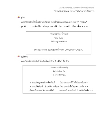 การเปรียบเทียบสิ่งหนึ่งเหมือนกับสิ่งหนึ่ง ใช้คําเชื่อมที่มีความหมายเดียวกับ คําว่า “เหมือน”
