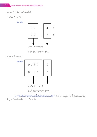 เช่น จงเปรียบเทียบทศนิยมต่อไปนี้
