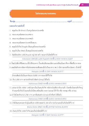 13. ถ้ามีเงินสกุลดอลลาร์บรูไนฉบับละ 1000 ดอลลาร์ 100 ฉบับ จะนำมาแลกเป็นเงินไทยได้กี่บาท