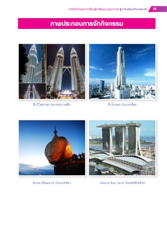 การจัดกิจกรรมการเรียนรู้อาเซียนแบบบูรณาการ ระดับมัธยมศึกษาตอนต้น ภาพประกอบการจัดกิจกรรม ตึกปิโตรนาส ประเทศมาเลเซีย ตึกใบหยก ประเทศไทย พระธาตุอินแขวน ประเทศพม่า Marina Bay Sand ประเทศสิงคโปร์