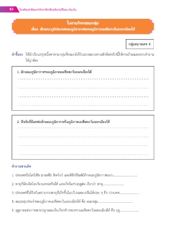 คำชี้แจง ให้นักเรียนสรุปเนื้อหาตามกลุ่มที่ตนเองได้รับมอบหมายตามหัวข้อต่อไปนี้ให้ครบถ้วนและตอบคำถาม