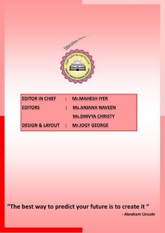 EDITOR IN CHIEF : Mr.MAHESH IYER EDITORS : Ms.ANJANA NAVEEN Ms.DHIVYA CHRISTY DESIGN & LAYOUT : Mr.JOGY GEORGE “The best way to predict your future is to create it “ - Abraham Lincoln