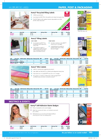 Code Avery Code Label Size (mm) Labels per Sheet Sheets per Pack RRP Your Price Code Avery Code Label Size (mm) Labels per Sheet Sheets per Pack RRP Your Price