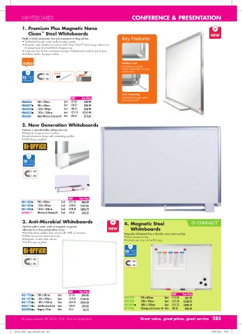 • Magnetic steel whiteboard surface with Nano Clean™ technology, delivers an