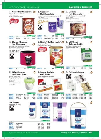 HOT CHOCOLATE, SUGAR & MILK FACILITIES SUPPLIES