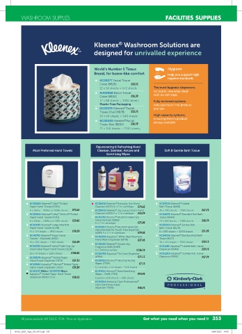 KC43752 Kleenex Paper Hand KC02456 Aquarius White Wall Mounted KC04226 Kleenex Standard Roll Bath
