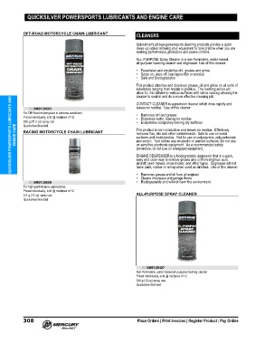 ENGINE CARE QUICKSILVER POWERSPORTS LUBRICANTS AND RACING MOTORCYCLE CHAIN LUBRICANT This product is non‑conductive and leaves no residue. Effectively
