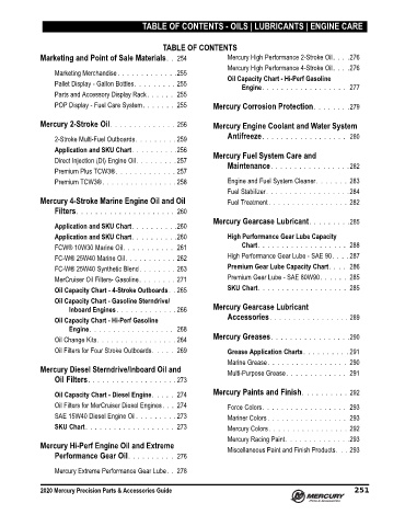 Marketing and Point of Sale Materials. . 254 Mercury High Performance 2-Stroke Oil. . . . 276