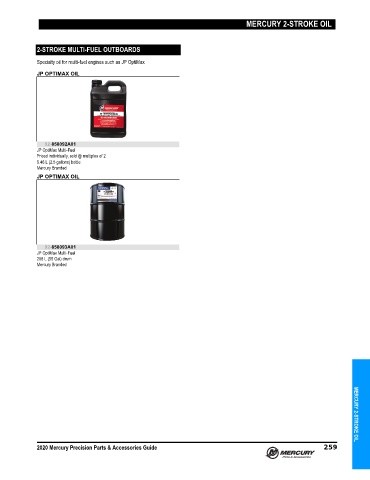 2020 Mercury Precision Parts & Accessories Guide 259 MERCURY 2-STROKE OIL