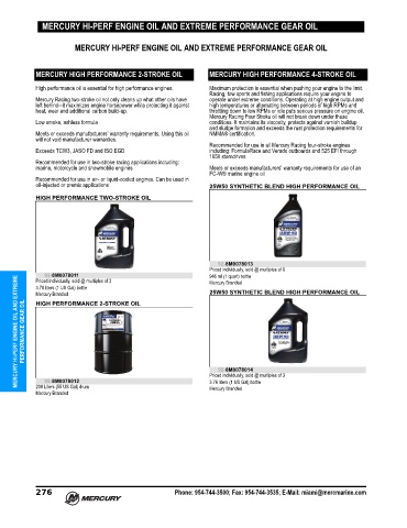 MERCURY HI-PERF ENGINE OIL AND EXTREME PERFORMANCE GEAR OIL HIGH PERFORMANCE 2-STROKE OIL