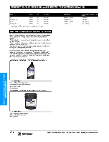 MERCURY HI-PERF ENGINE OIL AND EXTREME PERFORMANCE GEAR OIL Used in high‑performance gearcases