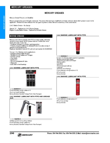 MERCURY GREASES Mercury greases have gone through a makeover. The product line has been simplified to eliminate confusion about which grease to use in what