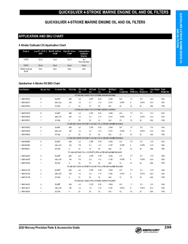 APPLICATION AND SKU CHART AND OIL FILTERS QUICKSILVER 4-STROKE MARINE ENGINE OIL