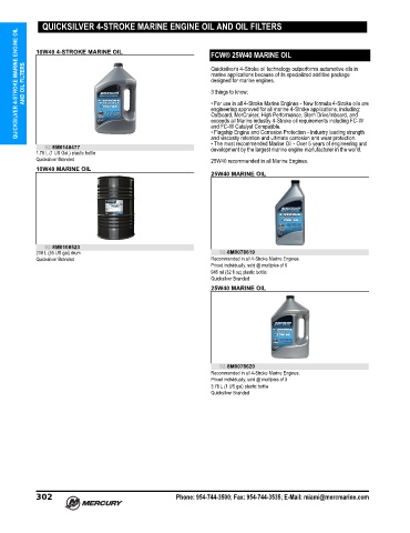 QUICKSILVER 4-STROKE MARINE ENGINE OIL AND OIL FILTERS FCW® 25W40 MARINE OIL
