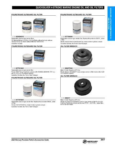 FOURSTROKE OUTBOARD OIL FILTER FOURSTROKE OUTBOARD OIL FILTER AND OIL FILTERS QUICKSILVER 4-STROKE MARINE ENGINE OIL