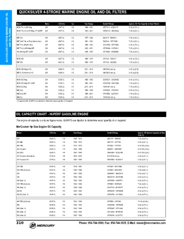 QUICKSILVER 4-STROKE MARINE ENGINE OIL AND OIL FILTERS Approx. Oil Pan Capacity w/ New Filter(1)