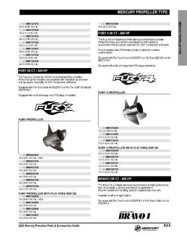14.6 X 21 RH SS 4 BL The Fury 4 is a 4‑blade top‑of‑the‑line tournament bass propeller. MERCURY PROPELLER TYPE