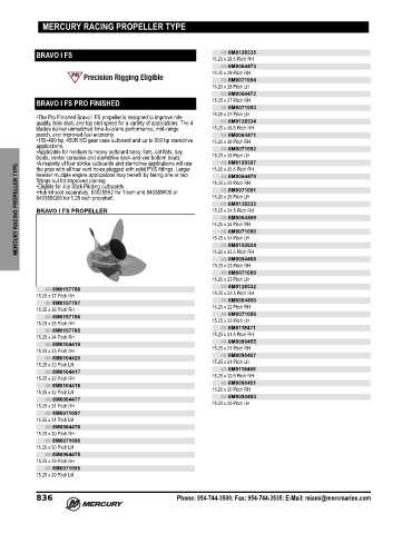 MERCURY RACING PROPELLER TYPE •Eligible for Joy Stick Piloting outboards. 15.25 x 25 Pitch LH