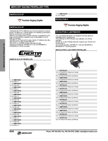 MERCURY RACING PROPELLER TYPE ENERTIA ECO XP PROPELLER REVOLUTION 4 LAB FINISH PROPELLER
