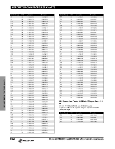 MERCURY RACING PROPELLER CHARTS 16.75 36 48-8M0002447 48-8M0002448 CNC Cleaver, Heat Treated SS 5 Blade, 15 Degree Rake ‑ 1100