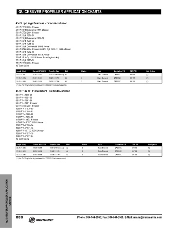QUICKSILVER PROPELLER APPLICATION CHARTS 888 Phone: 954-744-3500; Fax: 954-744-3535; E-Mail: miami@mercmarine.com