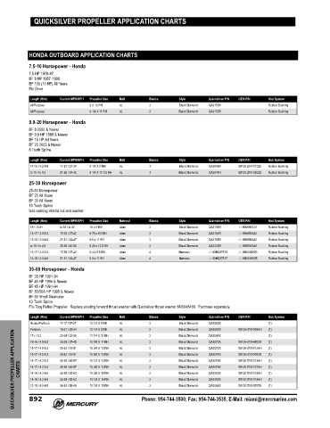 QUICKSILVER PROPELLER APPLICATION CHARTS 892 26-32 / 42-51 10 3/4 X 12 RH AL Phone: 954-744-3500; Fax: 954-744-3535; E-Mail: miami@mercmarine.com