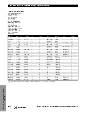 QUICKSILVER PROPELLER APPLICATION CHARTS 906 Phone: 954-744-3500; Fax: 954-744-3535; E-Mail: miami@mercmarine.com