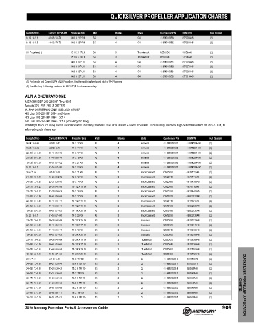 QUICKSILVER PROPELLER APPLICATION CHARTS