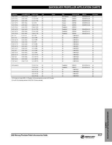 2020 Mercury Precision Parts & Accessories Guide 917 CHARTS QUICKSILVER PROPELLER APPLICATION